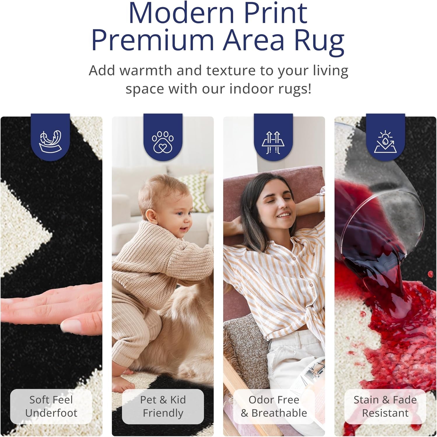 Modern Minimalist Area Rug – Beige & Black Abstract